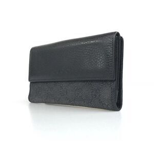 GUCCI WALLET BI FOLD 143389 0959 GG CANVAS Black Leather Authentic