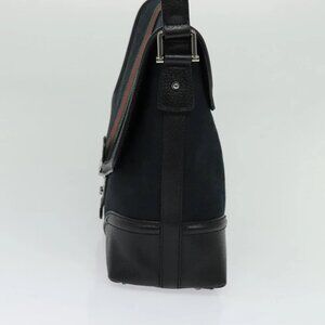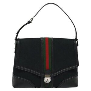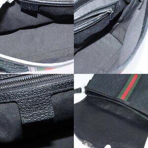 GUCCI Web Sherry Line GG Canvas Shoulder Bag Black Red Green Auth 126871