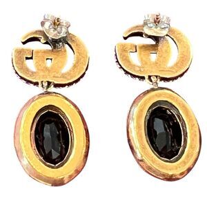 GUCCI Crystal Double G Earrings Black Aged Gold
