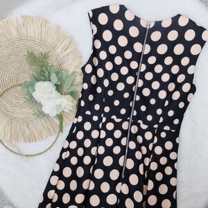 Gabby Skye Black Pink Polka Dot Scuba Fit and Flare Sleeveless Dress Size 4