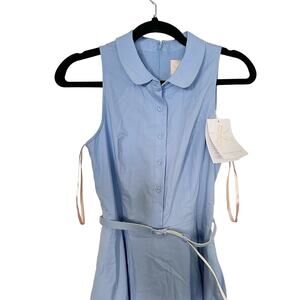 Elegant light blue midi dress. Sleeveless design. Perfect for casual outings.