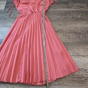 This stunning pink sundress by Gal Meets Glam features a flattering wrap-style V-neckline and short sleeves. The pleated skirt adds a touch of elegance, making it perfect for a wedding guest or cocktail occasion. Its light, flowy fabric ensures comfort and style throughout the day. no flaws. never worn. measurements in photos.