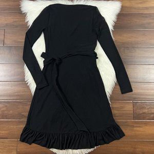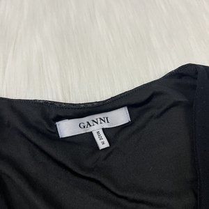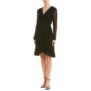 Ganni Size 34 Black Addison Ruffle Dot Mesh Wrap Dress Long Sleeve