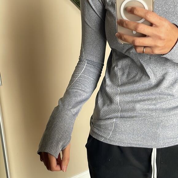 Gap Fit Gray Linear Detailing Crewneck Longsleeves Active Top