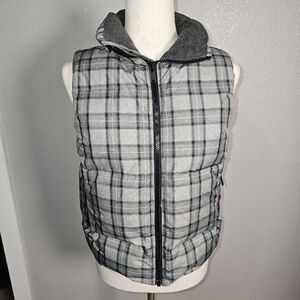 Gap Gray and Black Plaid Women's Zip up Puffer Vest with Zip Pockets XS