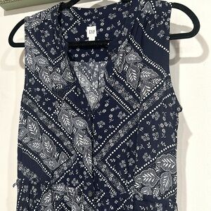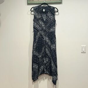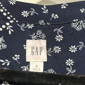 Gap Handkerchief hem button front midi dress navy white botanical foliage print