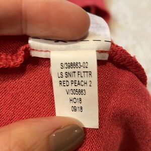 Gap- NWT Knit T-Shirt Dress Ruffled Flutter Bell Sleeves Red Peach- Size M