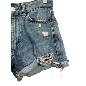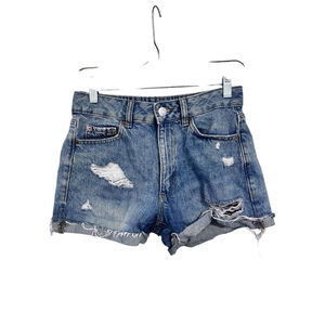 Elevate your casual wardrobe this summer with our trendy Garage distressed denim mom shorts in size 25. Crafted from high-quality denim material, these shorts offer the perfect combination of comfort and style for any casual occasion. The distressed design adds a touch of edginess and character to your look, making them a must-have addition to your summer wardrobe.
