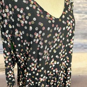 Garnet Hill Black Painter’s Dot Drop Waist Pocketed Midi Dress Size 10