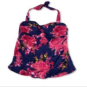 Garnet Hill Floral Underwire Tankini Top Navy Pink Sz 2