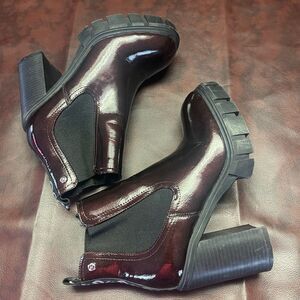 Gbg platform chukka boots, shiny burgundy size 6