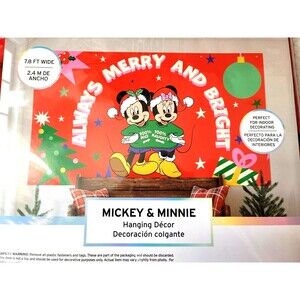 Gemmy Disney Mickey Minnie 8 ft Merry & Bright Christmas Decor Backdrop Banner
