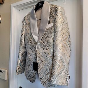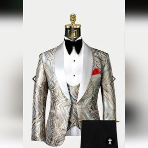 Gentlemens guru abstract print gold and champagne tuxedo jacket and vest