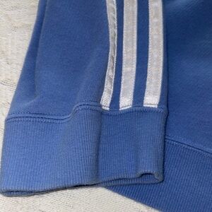 Gently Loved Comfortable light blue hoodie featuring iconic white stripes. Adidas logo on chest. Perfect for casual wear. **Missing Drawstring on Hood** Washed and Ready to Wear!