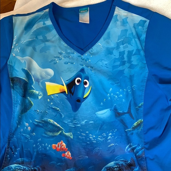 Gently Loved Blue Finding Dory Graphic Scrub Top