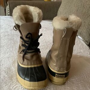 Beautiful Gently Loved Stylish Sorel boots in brown and black. With removable Insert that can be cleaned! NOT WASHED but HAND CLEANED! Perfect for outdoor adventures. Supet quality that is Sorel !!