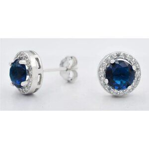 Genuine 2.54 Cts Blue & White Sapphire Stud Earrings .925 Silver