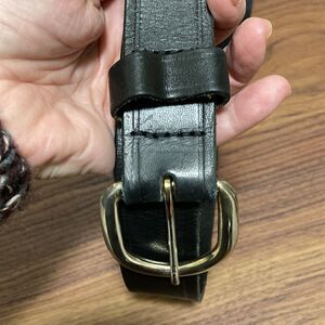 Genuine Black Leather Mens Belt with Brass Buckle. Size 38. Made in USA.