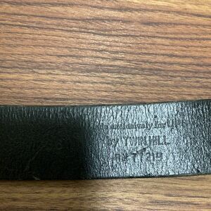 Black genuine leather Mens belt with brass buckle. Made in USA for UPS. Preowned in very good condition. Very slight tarnishing on buckle and some slight marks on the belt leather. An extra hole has been punched into belt to make it smaller.