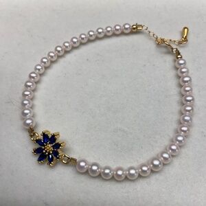 Genuine Freshwater Pearls With Blue Daisy Flower Bracelet