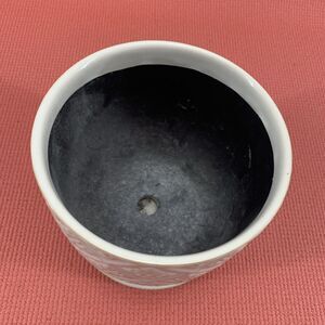 Geometric Diamond Pattern Ivory 6 x 6 Ceramic Flower Pot Planter Saucer
