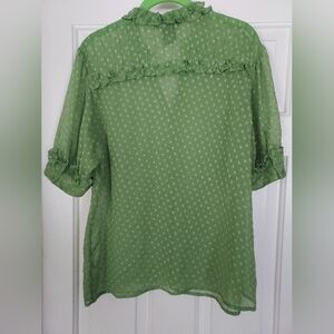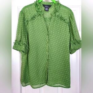 George designs by mark eisen women's sheer green top blouse w/ruffels size M.