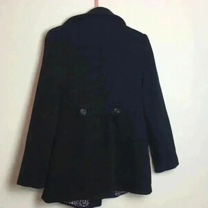 Good used condition no stains warm coat and stylish. Small hole in the back of coat see photos and too button is loose can be sown.