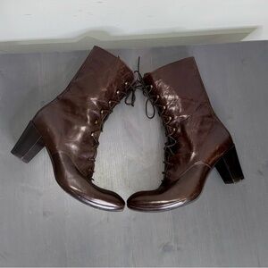 Gianni Barbato Women's Leather Lace Up Boots Pointed Toe
