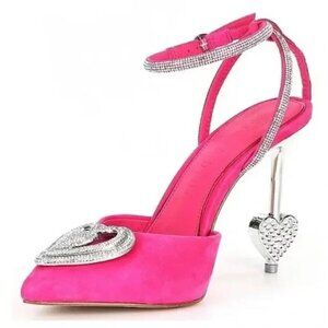Gianni Bini Suede Barbie Pink & Silver Heart Annika Ankle Strap Heels size 9.5