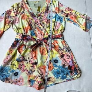 Gianni Bini floral Erynn Romper foam bouquet v neck waist tie size large