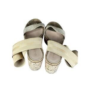 Gianvito Rossi Cork Wedge Sandals Nude Elastic Ankle Strap Size 36 US 6