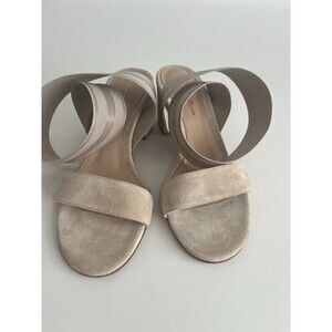 * Gianvito Rossi Emily Suede Block Heel Sandal 37.5 Beige Elastic Strap Minimalist