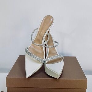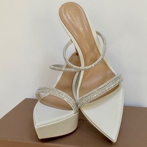 Gianvito Rossi white Cannes crystal stiletto mules brand-new with dust bag but no box. Shoes will go through Poshmark inspection and authentication. Video will be uploaded soon.