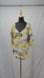 Gibson Puff Sleeve Silky Abstract Print Pull Over Blouse Yellow Gray V Neck L