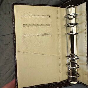 * inside - left (organizer part): three credit and/or business card slots; one larger pocket.