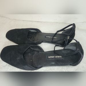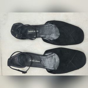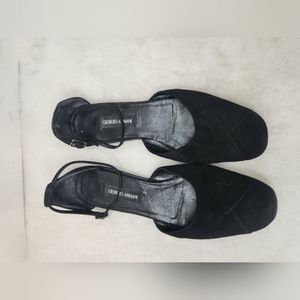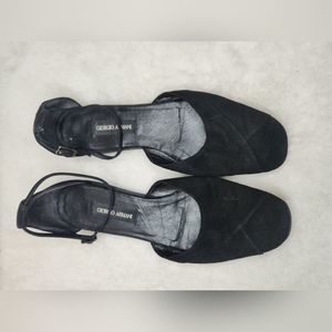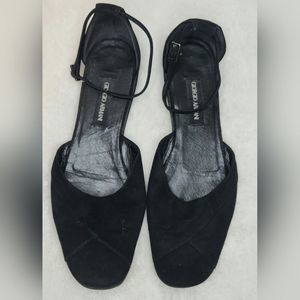 Giorgio Armani Black Suede Flats w/Ankle Strap Size 38