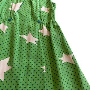 Green polka dot print dress with large star print