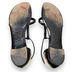Giuseppe Zanotti Italian Black Leather Gold Metal Women’s Sandals Sz 38 (7.5 US)