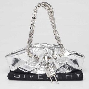 Givenchy Metallic Silver Leather 4G Mini Kenny Bag