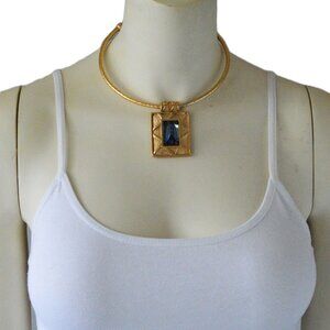 Givenchy gold plated faux cabochon stone (non removable)choker collar necklace. Please Note The Necklace Is Used In Great Condition, However Contains Faint Surface Scratches, Faint Discoloration, Natural Handling Patina. All consistent for it's age & use, as used second hand items will contain imperfections. Great Collectors Item.