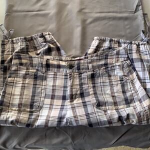 Sz 8P Gloria Vanderbilt plaid Bermuda shorts w/front/back/side pockets tie hem that gathers (no elastic). Is gently used and in excellent condition.
