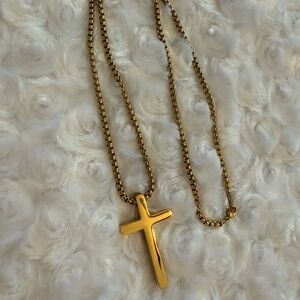 Simple gold colored cross pendant on a matching chain. Perfect for any occasion.