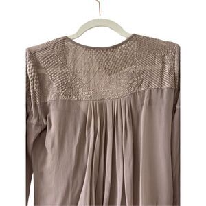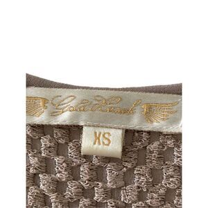 Gold Hawk Tassel Front Long Sleeve Peasant Blouse Womens Tan Size XS