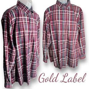Gold Label Shirt Button Down Men's XXL Long Sleeve Cotton Plaid Red