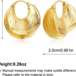 Gold Plated Brass Hoop Earrings for Women Chunky Statement Jewelry