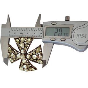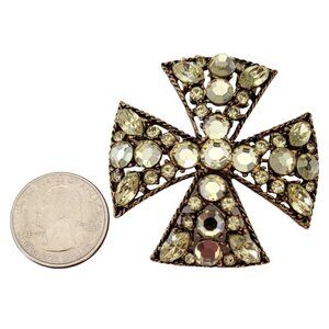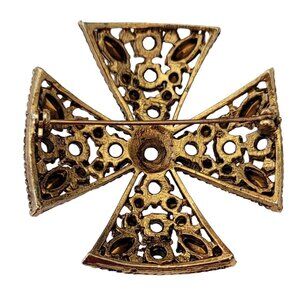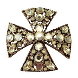 Gold Tone Jonquil Rhinestone Vintage Maltese Cross Brooch Pin E734
