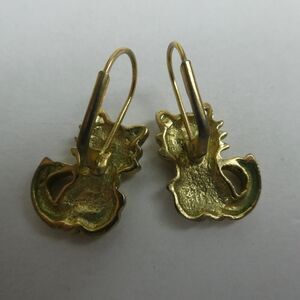 Gold Tone Kitty Cat Kitten Rhinestone Drop Lever Back Pierced Earrings Kitties
