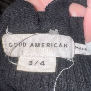 Good American Black Cropped Sweater Tank Sz 3/4 Flat Rib Strappy Back