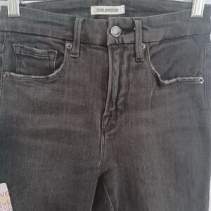Good American GOOD LEGS CROP Jeans Size 0/25 Black Stretch Denim Raw Hem NEW