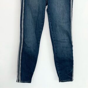 Keywords: denim, stretch, straight, high rise, high waist, tuxedo stripe, side stripe, ankle